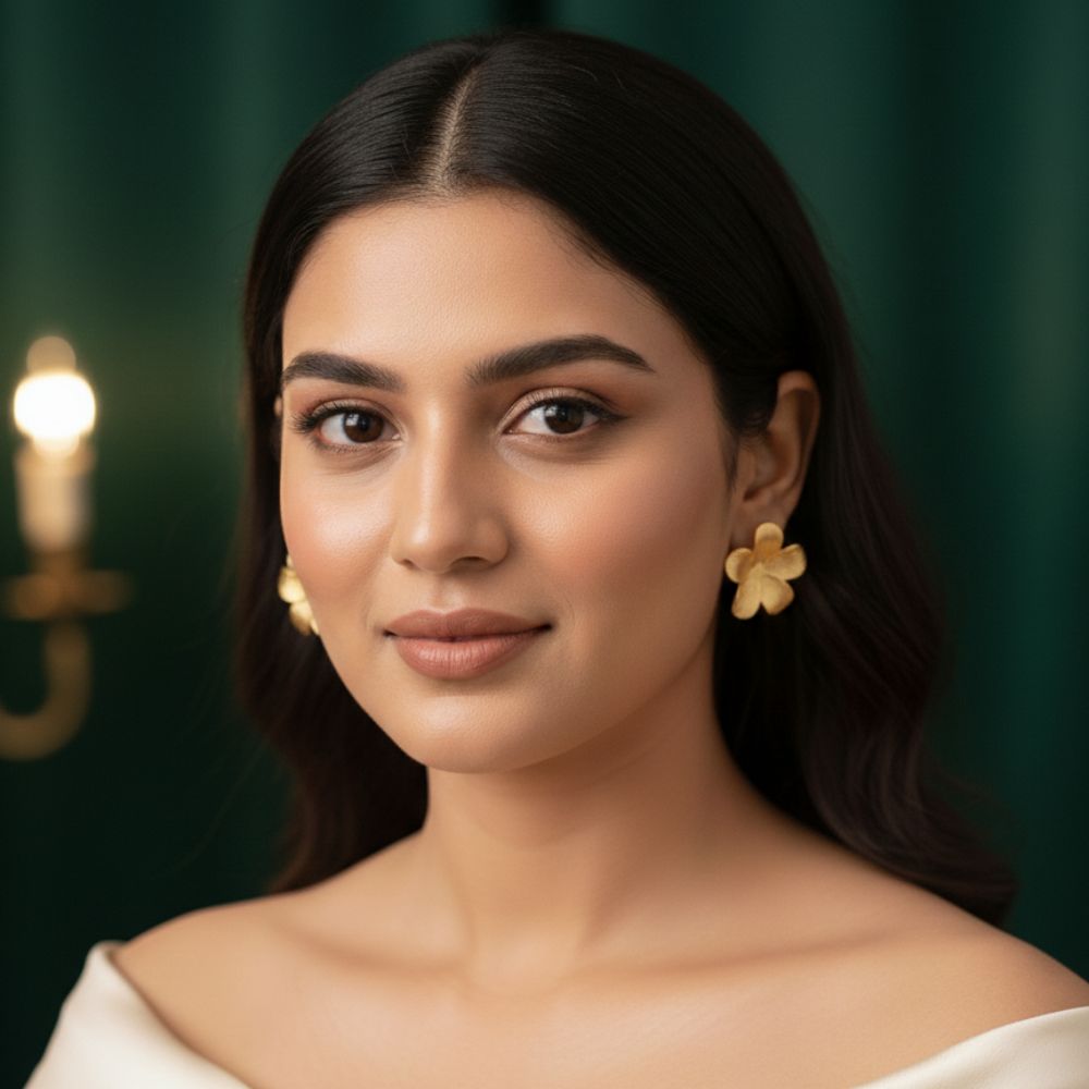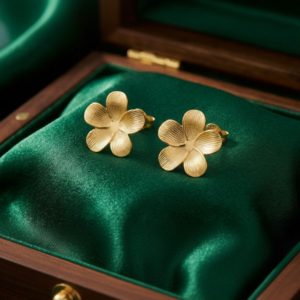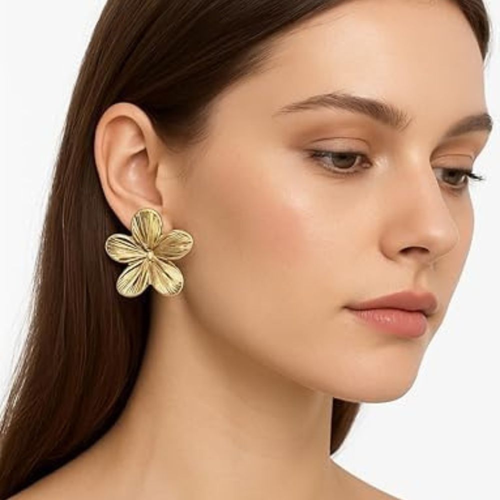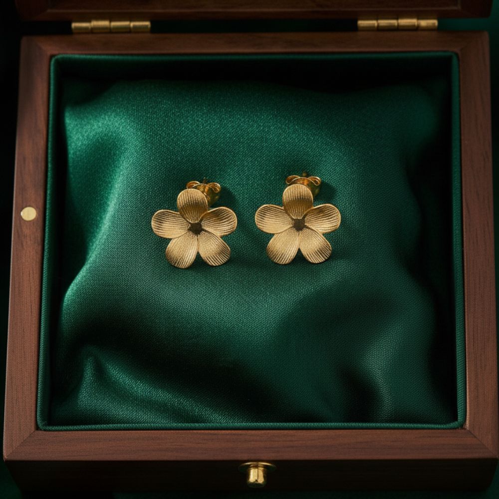 The Aurielle Bloom Gold Stud Earrings by Ashin Beauty are inspired by nature’s effortless beauty, reimagined in a refined floral silhouette. Designed with delicately textured petals and finished in a rich gold-tone anti-tarnish plating, these earrings make a statement without being overpowering.